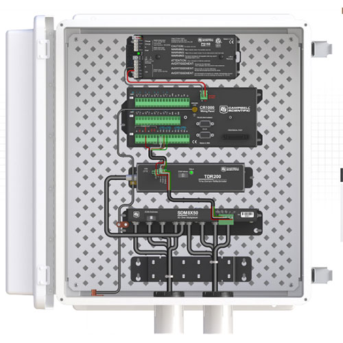TDR系統(tǒng)的主要組件是CSI 數(shù)據(jù)采集器、TDR200反射計、SDMX50系列同軸多路器、連接電纜和TDR探頭。